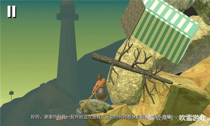 游戏的主角是一个蜷缩在陶缸中的男人,玩家仅凭一把物理诡异的锤子,需攀爬由随机几何体堆砌的险峰。操作完全依赖鼠标对锤子的细微操控,任何0.1秒的失误都可能让数小时进度归零。这种设计并非技术缺陷——开发者曾在采访中坦言:“游戏中的地形看似随机,实则每个凸起都是精心计算的‘教学工具’。”